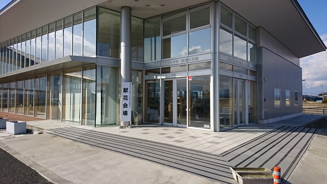 3月11日の沿岸部、慰霊祭会場の看板写真です。