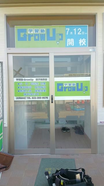 先日、学習塾GROW UP様へ、看板取付のお仕事をしてまいりました。